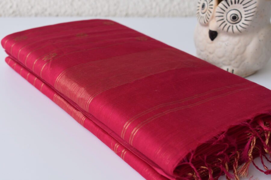 Maheshwari Chameli Border Golden Stripes Hot Pink Saree